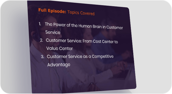 Full Episode: Topics Covered 1. The Power of the Human Brain in Customer Service 2. Customer Service: From Cost Center to Value Center 3. Customer Service as a Competitive Advantage