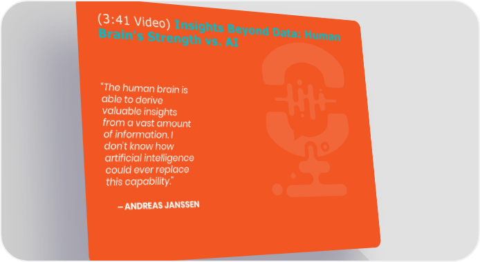 (3:41 Video) Insights Beyond Data: Human Brain's Strength vs. AI “The human brain is able to derive valuable insights from a vast amount of information. I don’t know how artificial intelligence could ever replace this capability.” —ANDREAS JANSSEN