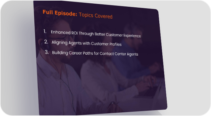 Full Episode: Topics Covered 1. Enhanced ROI Through Better Customer Experience 2. Aligning Agents with Customer Profiles 3. Building Career Paths for Contact Center Agents