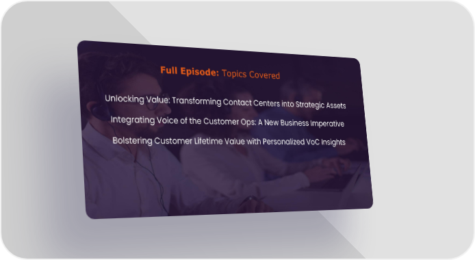 Full Episode: Topics Covered Unlocking Value: Transforming Contact Centers into Strategic Assets Integrating Voice of the Customer Ops: A New Business Imperative Bolstering Customer Lifetime Value with Personalized VoC Insights