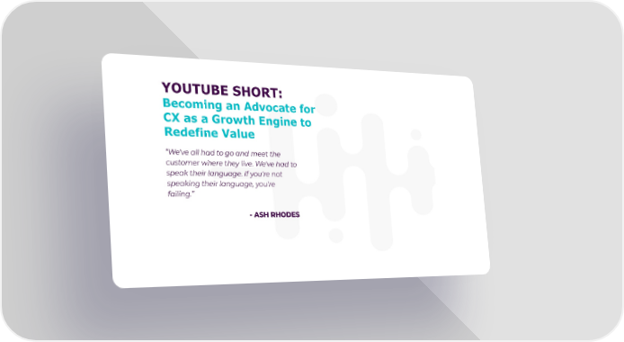 YOUTUBE SHORT: Becoming an Advocate for CX as a Growth Engine to Redefine Value “We've all had to go and meet the customer where they live. We've had to speak their language. If you're not speaking their language, you're failing.” - ASH RHODES