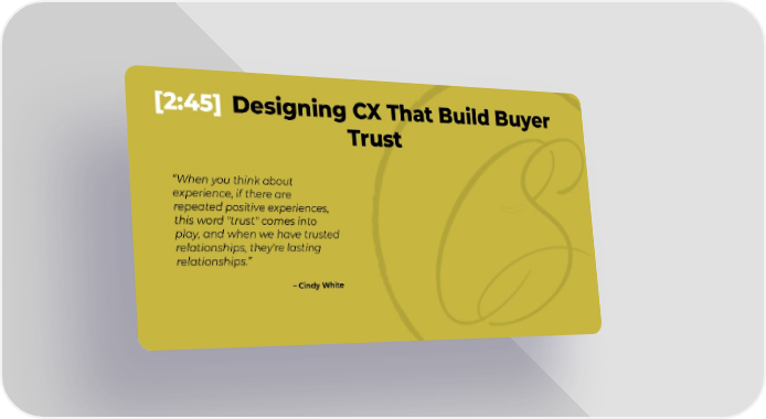 [2:45] Designing CX That Build Buyer Trust “When you think about experience, if there are repeated positive experiences, this word "trust" comes into play, and when we have trusted relationships, they're lasting relationships.” – Cindy White