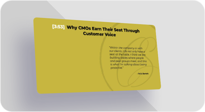 [3:53] Why CMOs Earn Their Seat Through Customer Voice “Within the company or with our clients, I do not only have a seat at the table. I think we are building tables where people and peer groups meet, and this is what I'm talking about being proactive.” – Felix Bartels