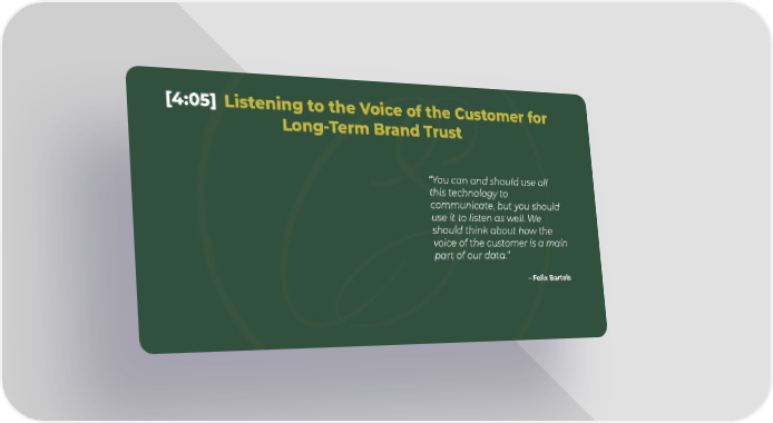 [4:05] Listening to the Voice of the Customer for Long-Term Brand Trust “You can and should use all this technology to communicate, but you should use it to listen as well. We should think about how the voice of the customer is a main part of our data.” – Felix Bartels