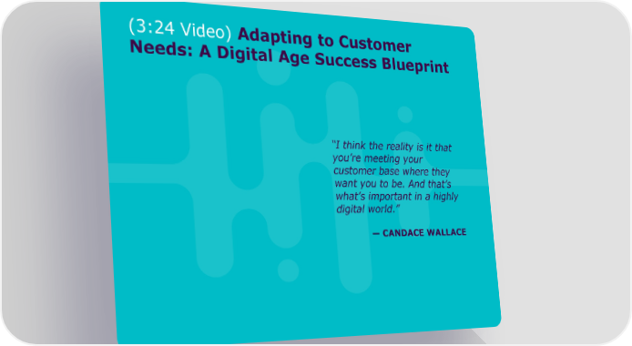 (3:24 Video) Adapting to Customer Needs: A Digital Age Success Blueprint “I think the reality is it that you’re meeting your customer base where they want you to be. And that’s what’s important in a highly digital world.” —CANDACE WALLACE