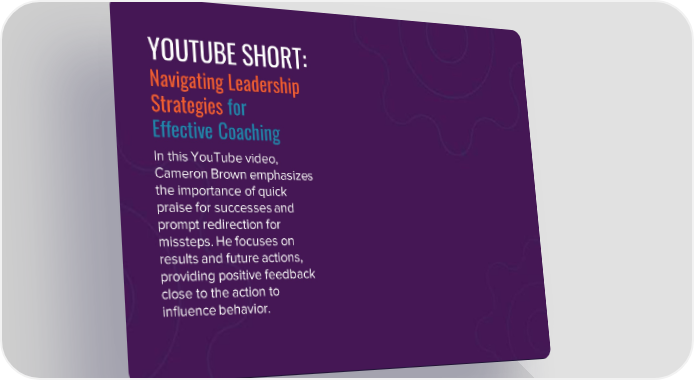 YOUTUBE SHORT: Navigating Leadership Strategies for Effective Coaching In this YouTube video, Cameron Brown emphasizes the importance of quick praise for successes and prompt redirection for missteps. He focuses on results and future actions, providing positive feedback close to the action to influence behavior.