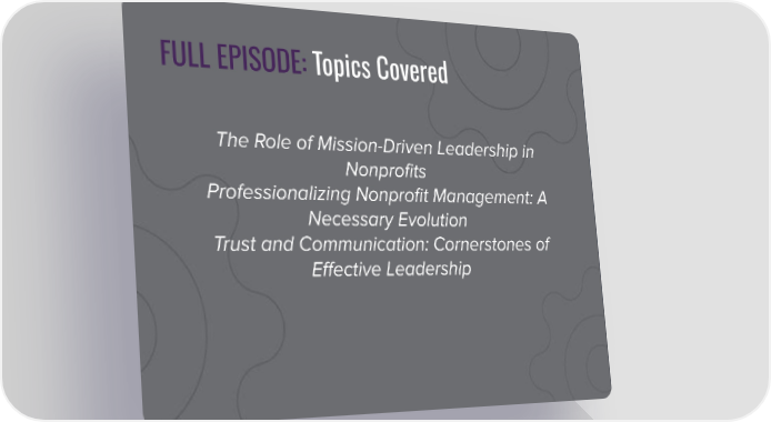 FULL EPISODE: Topics Covered The Role of Mission-Driven Leadership in Nonprofits Professionalizing Nonprofit Management: A Necessary Evolution Trust and Communication: Cornerstones of Effective Leadership