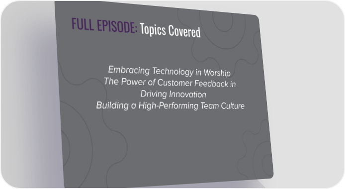 FULL EPISODE: Topics Covered Embracing Technology in Worship The Power of Customer Feedback in Driving Innovation Building a High-Performing Team Culture