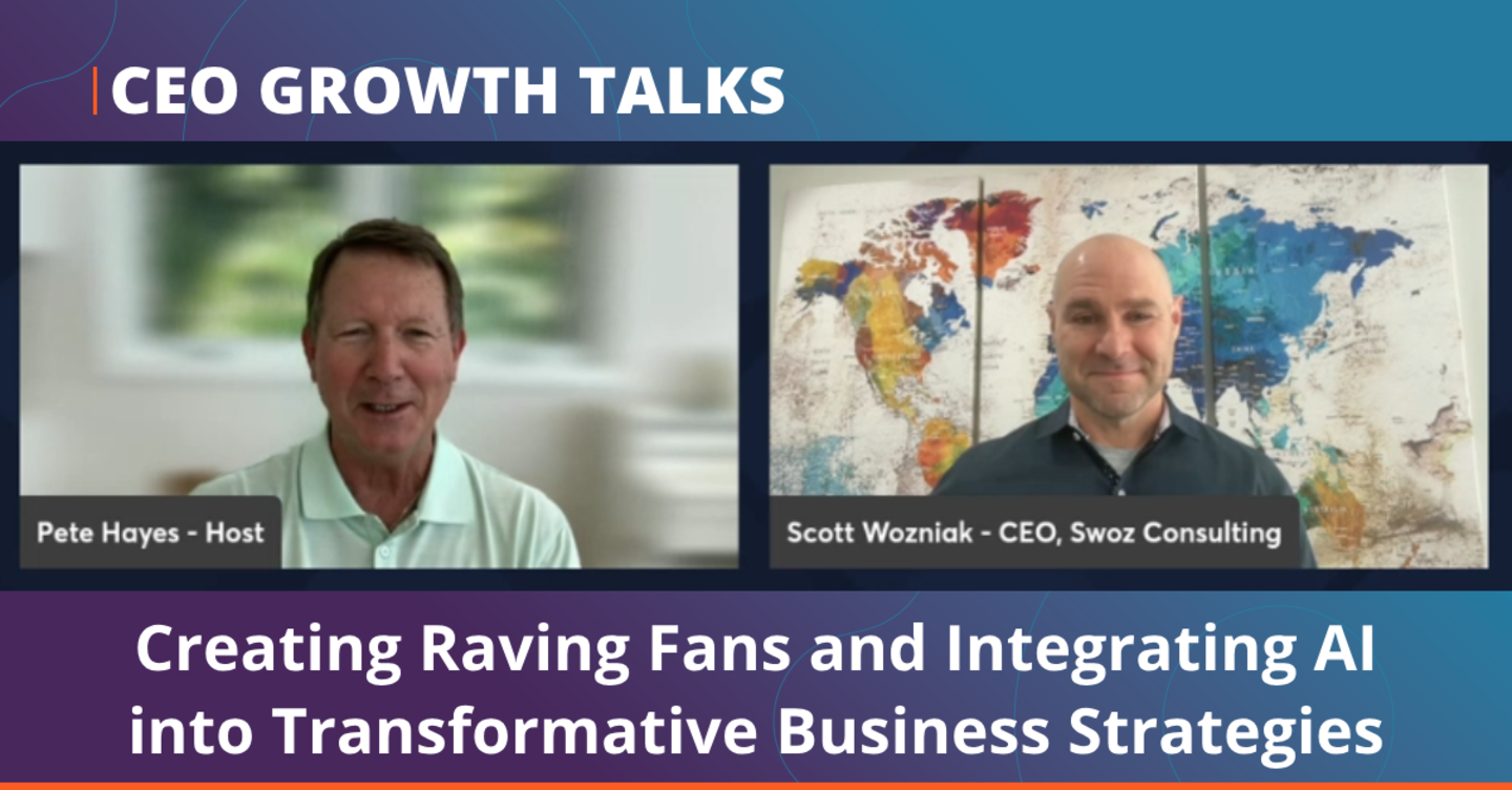 In this episode of CEO Growth Talks, Scott Wozniak, CEO of Swoz Consulting, joins Pete Hayes to explore legendary customer experiences and AI-driven business strategies. He shares lessons from his early leadership failures to becoming a sought-after consultant, emphasizing customer insight and systemized strategies. Scott reveals how AI can transform customer and employee experiences across industries.