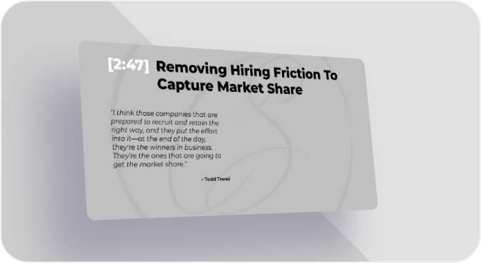 [2:47] Removing Hiring Friction To Capture Market Share “I think those companies that are prepared to recruit and retain the right way, and they put the effort into it—at the end of the day, they're the winners in business. They're the ones that are going to get the market share.” – Todd Treml