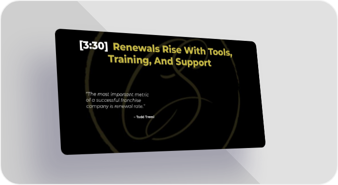 [3:30] Renewals Rise With Tools, Training, And Support “The most important metric of a successful franchise company is renewal rate.” – Todd Treml