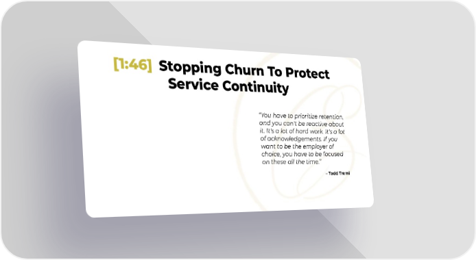 [1:46] Stopping Churn To Protect Service Continuity “You have to prioritize retention, and you can't be reactive about it. It's a lot of hard work. It's a lot of acknowledgements. If you want to be the employer of choice, you have to be focused on these all the time.” – Todd Treml