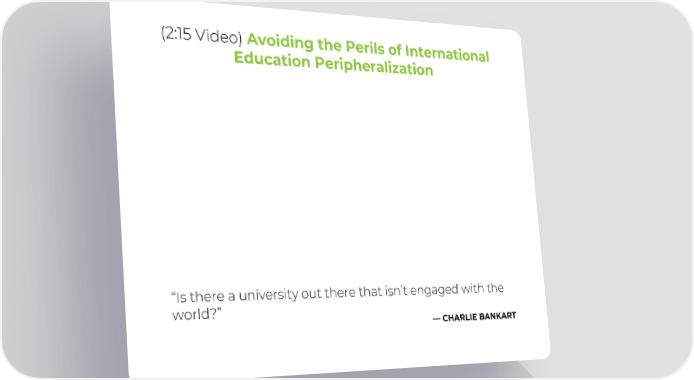 (2:15 Video) Avoiding the Perils of International Education Peripheralization “Is there a university out there that isn’t engaged with the world?” —CHARLIE BANKART