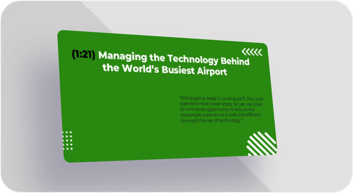 (1:21) Managing the Technology Behind the World’s Busiest Airport “We’ve got to keep it running 24/7. This is an operation that never stops. So yes, we have an immense opportunity to ensure the passenger experience is safe and efficient through the use of technology.”