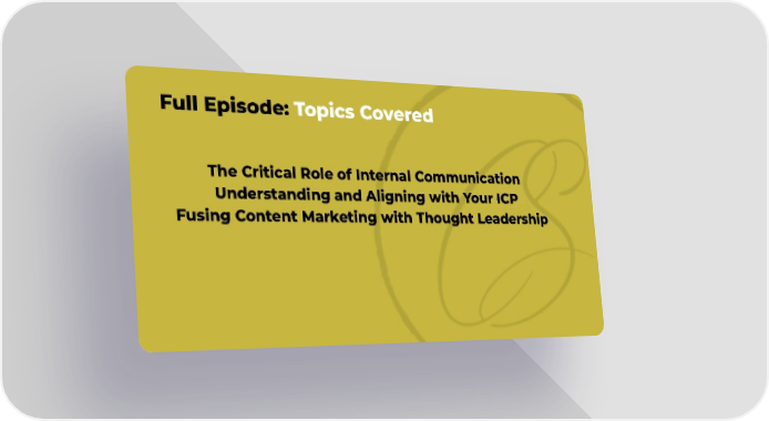 Full Episode:Topics Covered The Critical Role of Internal Communication Understanding and Aligning with Your ICP Fusing Content Marketing with Thought Leadership