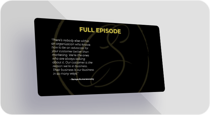 FULL EPISODE "There’s nobody else within an organization who knows how to be an advocate for your customer better than marketing. We’re the ones who are always talking about it. Our customer is the reason we’re in business. Their business is our business in so many ways." – Ramya Kumaraswamy