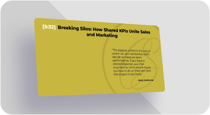 [5:32] Breaking Silos: How Shared KPIs Unite Sales and Marketing “The biggest unlock is the way in which we, as a leadership team, decide to measure team performance. If you have a shared objective, you'd be surprised by what people figure out how to do on their own and the impact it can have.” – Emily Ferdinando