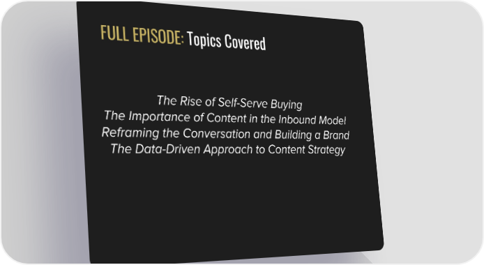 FULL EPISODE: Topics Covered The Rise of Self-Serve Buying The Importance of Content in the Inbound Model Reframing the Conversation and Building a Brand The Data-Driven Approach to Content Strategy