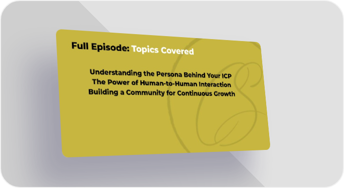 Full Episode:Topics Covered Understanding the Persona Behind Your ICP The Power of Human-to-Human Interaction Building a Community for Continuous Growth