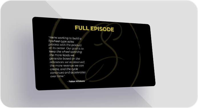 FULL EPISODE "We're working to build a üywheel-type sales process with the product at its center. Our goal is to keep the wheel spinning: the more leads we generate based on the references we've observed, the more revenue we can create, and the cycle continues and accelerates over time." – Fabian Wilckens