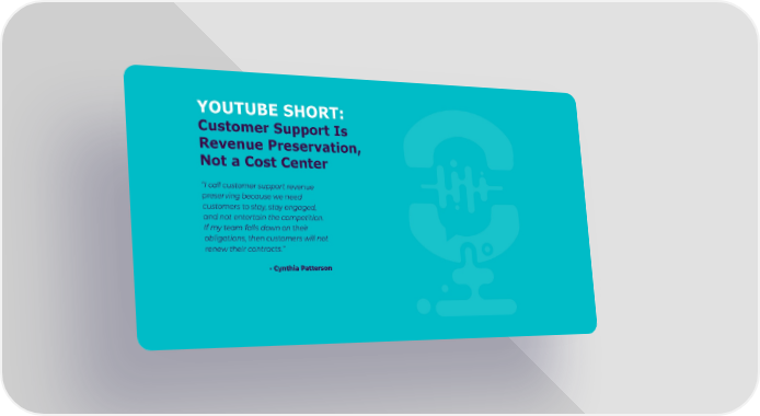 YOUTUBE SHORT: Customer Support Is Revenue Preservation, Not a Cost Center I call customer support revenue preserving because we need customers to stay, stay engaged, and not entertain the competition. If my team falls down on their obligations, then customers will not renew their contracts. - Cynthia Patterson