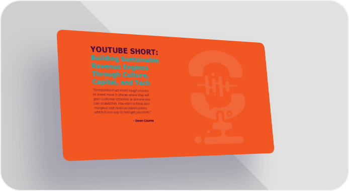 YOUTUBE SHORT: Building Sustainable Revenue Engines Through Culture, Capital, and Tech “Companies must make tough choices to invest more in places where they will gain customer attention or achieve low- cost acquisition. You want to have zero marginal cost revenue opportunities, which is one way to help get you there.” - Dean Czuma