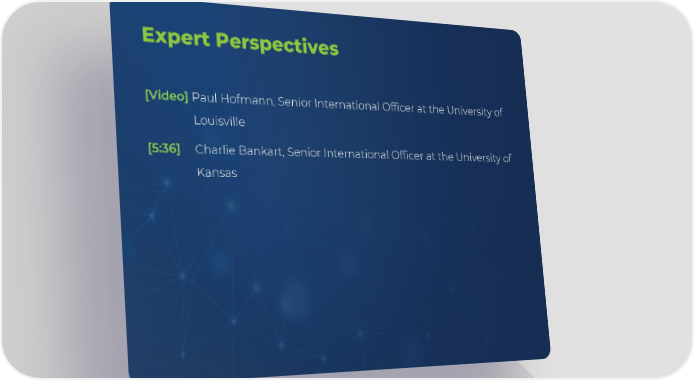 Expert Perspectives [Video] Paul Hofmann, Senior International Officer at the University of Louisville [5:36] Charlie Bankart, Senior International Officer at the University of Kansas