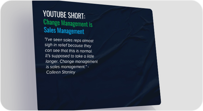 YOUTUBE SHORT: Change Management is Sales Management "I've seen sales reps almost sigh in relief because they can see that this is normal. It's supposed to take a little longer. Change management is sales management." - Colleen Stanley