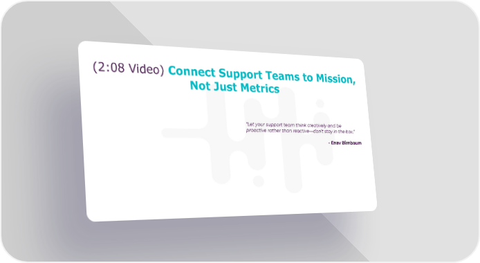 (2:08 Video) Connect Support Teams to Mission, Not Just Metrics “Let your support team think creatively and be proactive rather than reactive—don’t stay in the box.” - Enav Birnbaum
