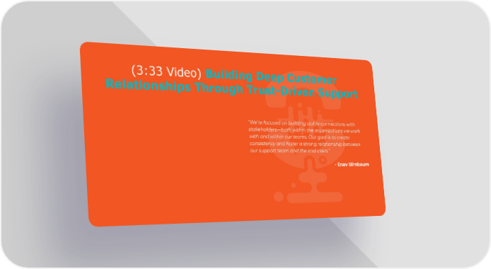 (3:33 Video) Building Deep Customer Relationships Through Trust-Driven Support “We’re focused on building stable connections with stakeholders—both within the organizations we work with and within our teams. Our goal is to create consistency and foster a strong relationship between our support team and the end users.” - Enav Birnbaum