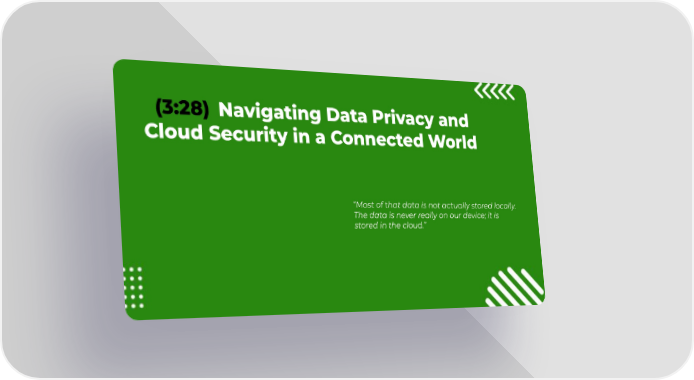 (3:28) Navigating Data Privacy and Cloud Security in a Connected World “Most of that data is not actually stored locally. The data is never really on our device; it is stored in the cloud.”