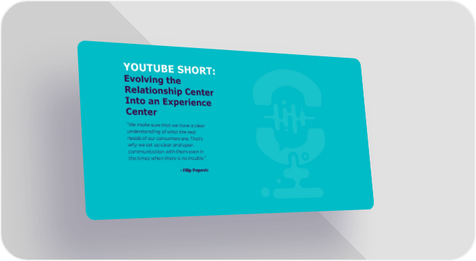 YOUTUBE SHORT: Evolving the Relationship Center Into an Experience Center “We make sure that we have a clear understanding of what the real needs of our consumers are. That's why we set up clear and open communication with them even in the times when there is no trouble.” - Filip Popovic