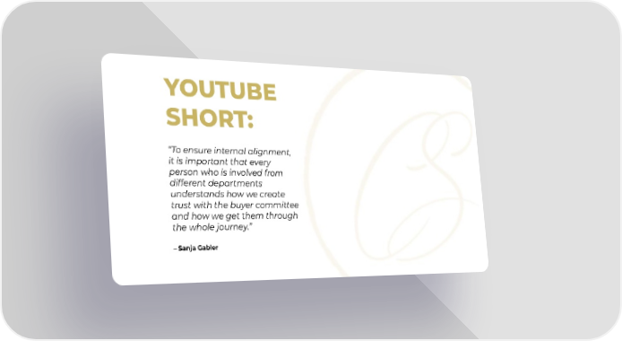 YOUTUBE SHORT: “To ensure internal alignment, it is important that every person who is involved from different departments understands how we create trust with the buyer committee and how we get them through the whole journey.” – Sanja Gabler