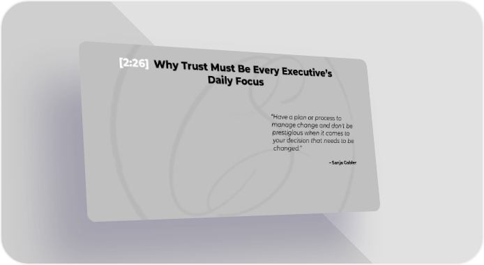 [2:26] Why Trust Must Be Every Executive’s Daily Focus “Have a plan or process to manage change and don't be prestigious when it comes to your decision that needs to be changed.” – Sanja Gabler