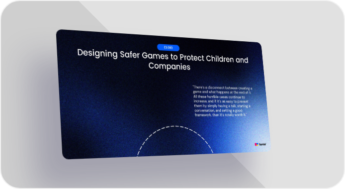 Designing Safer Games to Protect Children and Companies (3:08) "There’s a disconnect between creating a game and what happens at the end of it. All these horrible cases continue to increase, and if it’s as easy to prevent them by simply having a talk, starting a conversation, and setting a good framework, then it’s totally worth it."