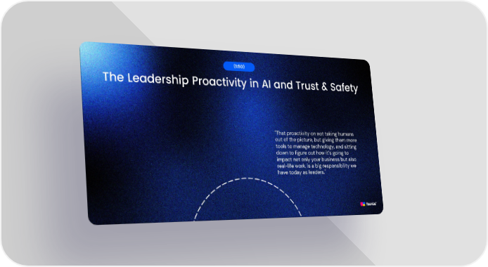 The Leadership Proactivity in AI and Trust & Safety (1:50) "That proactivity on not taking humans out of the picture, but giving them more tools to manage technology, and sitting down to figure out how it’s going to impact not only your business but also real-life work, is a big responsibility we have today as leaders."