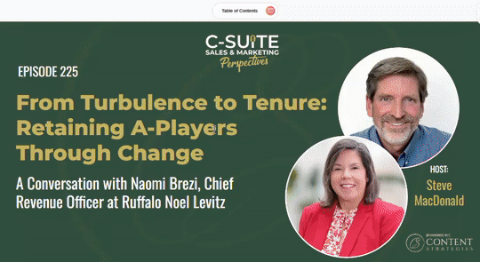 From Turbulence to Tenure: Retaining A-Players Through Change A Conversation with Naomi Brezi, Chief Revenue Officer at Ruffalo Noel Levitz EPISODE 225 Steve MacDonald HOST: