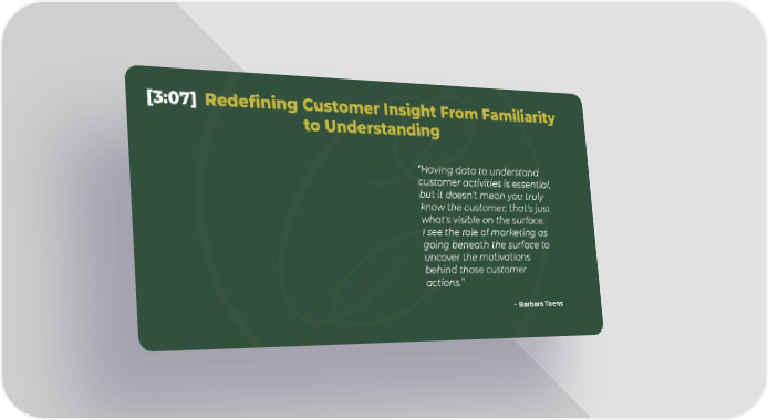 [3:07] Redefining Customer Insight From Familiarity to Understanding “Having data to understand customer activities is essential, but it doesn't mean you truly know the customer; that's just what's visible on the surface. I see the role of marketing as going beneath the surface to uncover the motivations behind those customer actions.” – Barbara Toens