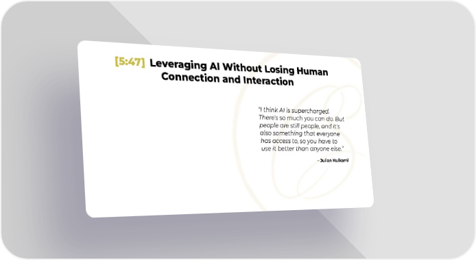 [5:47] Leveraging AI Without Losing Human Connection and Interaction “I think AI is supercharged. There's so much you can do. But people are still people, and it's also something that everyone has access to, so you have to use it better than anyone else.” – Julian Kulkarni