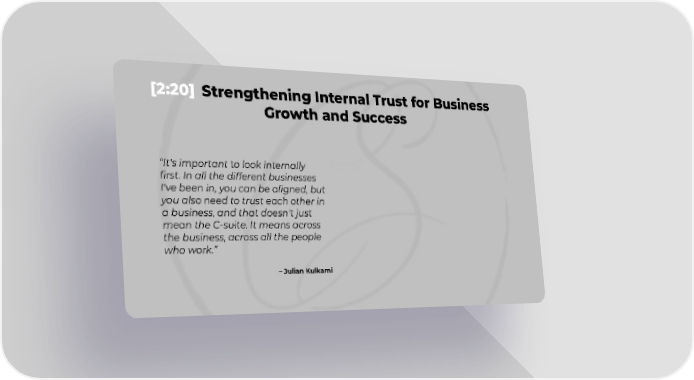 [2:20] Strengthening Internal Trust for Business Growth and Success “It's important to look internally first. In all the different businesses I've been in, you can be aligned, but you also need to trust each other in a business, and that doesn't just mean the C-suite. It means across the business, across all the people who work.” – Julian Kulkarni