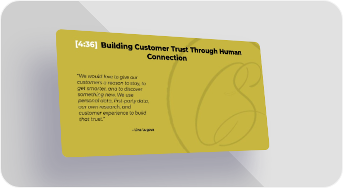 [4:36] Building Customer Trust Through Human Connection “We would love to give our customers a reason to stay, to get smarter, and to discover something new. We use personal data, first-party data, our own research, and customer experience to build that trust.” – Lina Lugova