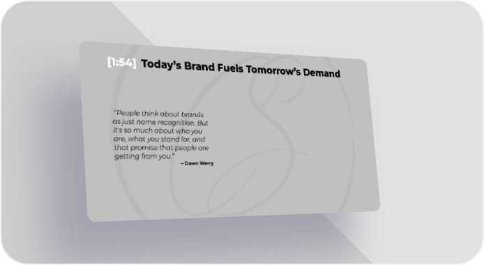 [1:54] Today’s Brand Fuels Tomorrow’s Demand “People think about brands as just name recognition. But it's so much about who you are, what you stand for, and that promise that people are getting from you.” – Dawn Werry