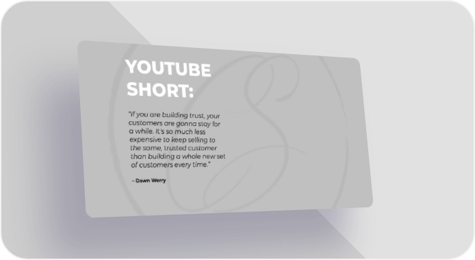 YOUTUBE SHORT: “If you are building trust, your customers are gonna stay for a while. It's so much less expensive to keep selling to the same, trusted customer than building a whole new set of customers every time.” – Dawn Werry
