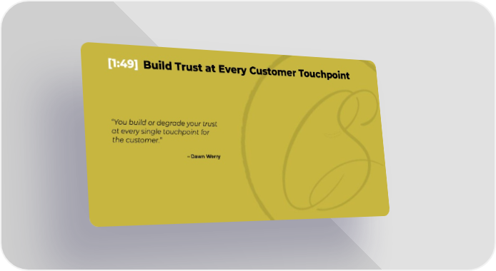 [1:49] Build Trust at Every Customer Touchpoint “You build or degrade your trust at every single touchpoint for the customer.” – Dawn Werry