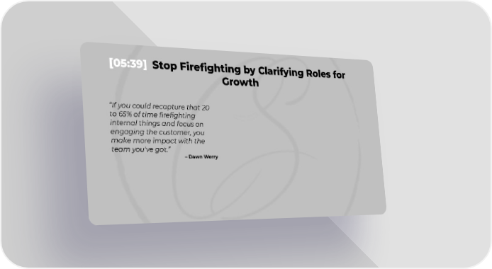 [05:39] Stop Firefighting by Clarifying Roles for Growth “If you could recapture that 20 to 65% of time firefighting internal things and focus on engaging the customer, you make more impact with the team you've got.” – Dawn Werry
