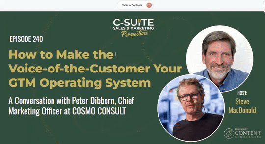 How to Make the Voice-of-the-Customer Your GTM Operating System A Conversation with Peter Dibbern, Chief Marketing Officer at COSMO CONSULT EPISODE 240 Steve MacDonald HOST:
