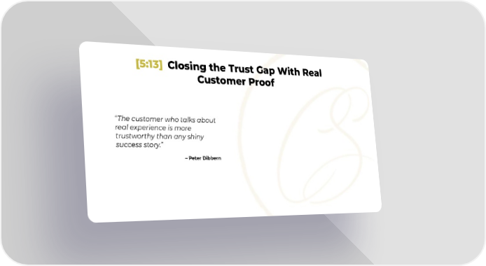 [5:13] Closing the Trust Gap With Real Customer Proof The customer who talks about real experience is more trustworthy than any shiny success story. Peter Dibbern