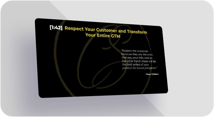 [1:42] Respect Your Customer and Transform Your Entire GTM Respect the customer because they are the ones that pay your bills, and on the other hand, those will be the best sellers of your product for future prospects. Peter Dibbern