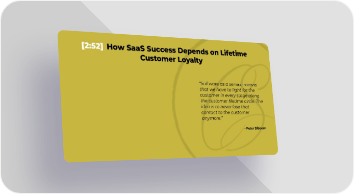 [2:52] How SaaS Success Depends on Lifetime Customer Loyalty Software as a service means that we have to fight for the customer in every stage along the customer lifetime circle. The idea is to never lose that contact to the customer anymore. Peter Dibbern