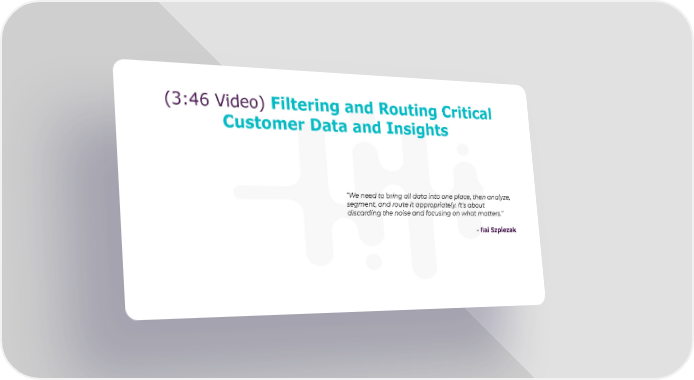 (3:46 Video) Filtering and Routing Critical Customer Data and Insights “We need to bring all data into one place, then analyze, segment, and route it appropriately. It's about discarding the noise and focusing on what matters.” - Ilai Szpiezak